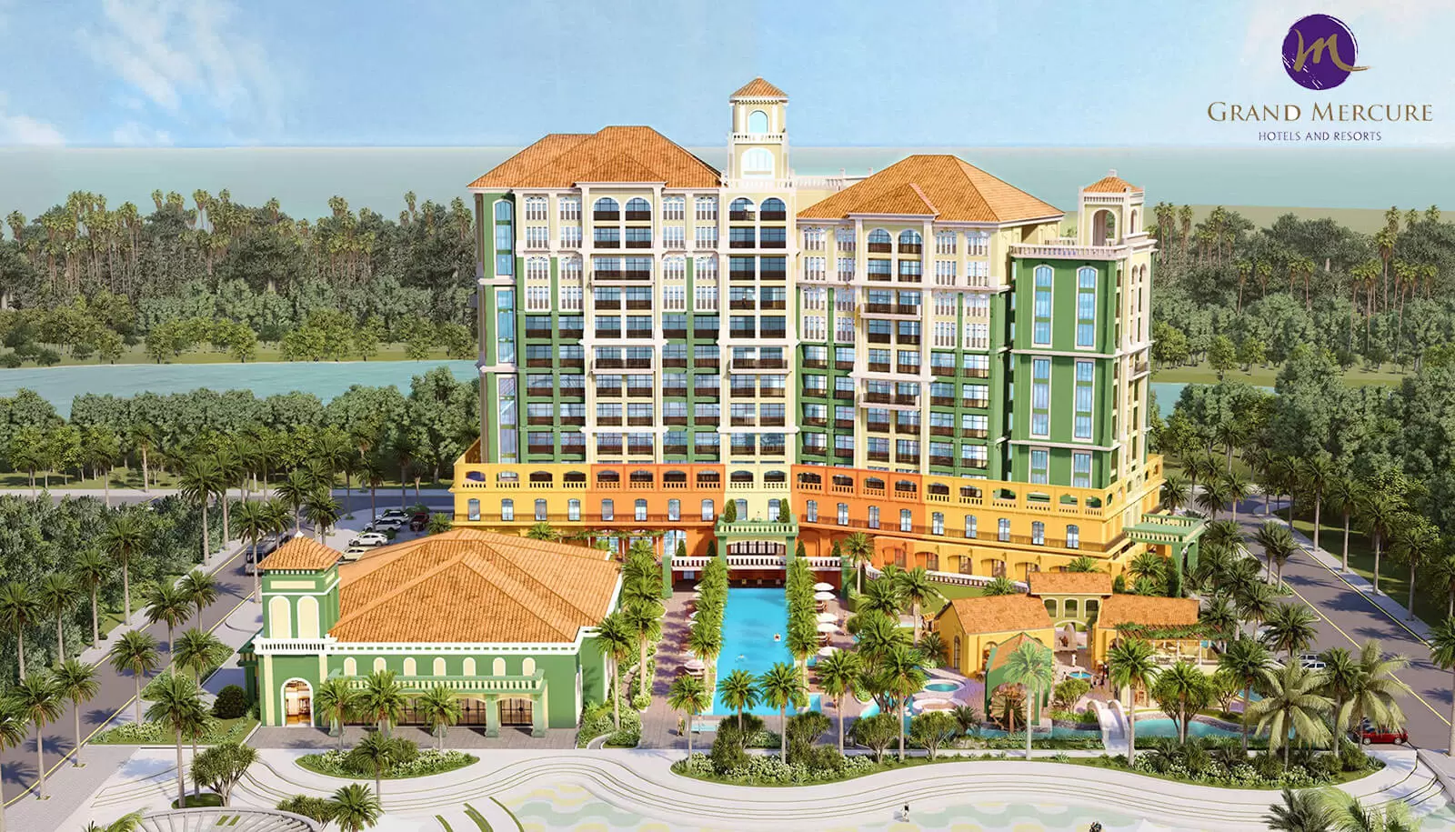 Theo phương châm “Global Presence – Local Experiences” của thương hiệu – Grand Mercure Ho Tram lấy cảm hứng từ thành phố thương cảng hơn 500 năm tuổi La Habana. Những đường nét và sắc màu kiến trúc đặc trưng của vùng Caribbean được hòa quyện ngọt ngào để tạo nên một công trình mang âm hưởng thế giới, mà vẫn giữ được nét quyết rũ của miền biển Hồ Tràm.
