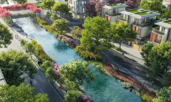 Hệ sinh thái Sông nước Độc đáo: Tôn tạo 7 dòng kênh tự nhiên rộng 10m chảy xuyên qua dự án và nối thông với Kênh Xáng Lớn, tạo nên không gian sống ven sông mát mẻ, độc đáo và một mặt bằng cảnh quan ấn tượng.